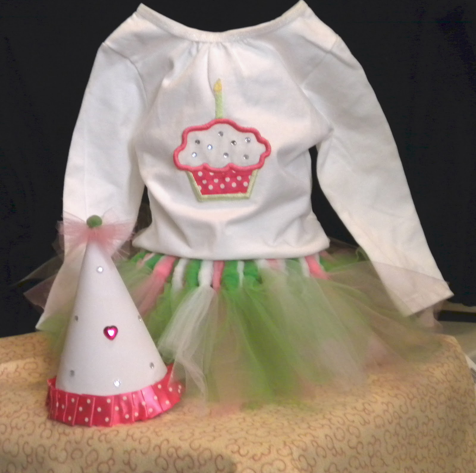 This is the birthday tutu, shirt and hat although I still have to add her name to the shirt. I just love sewing for little girls especially this one!